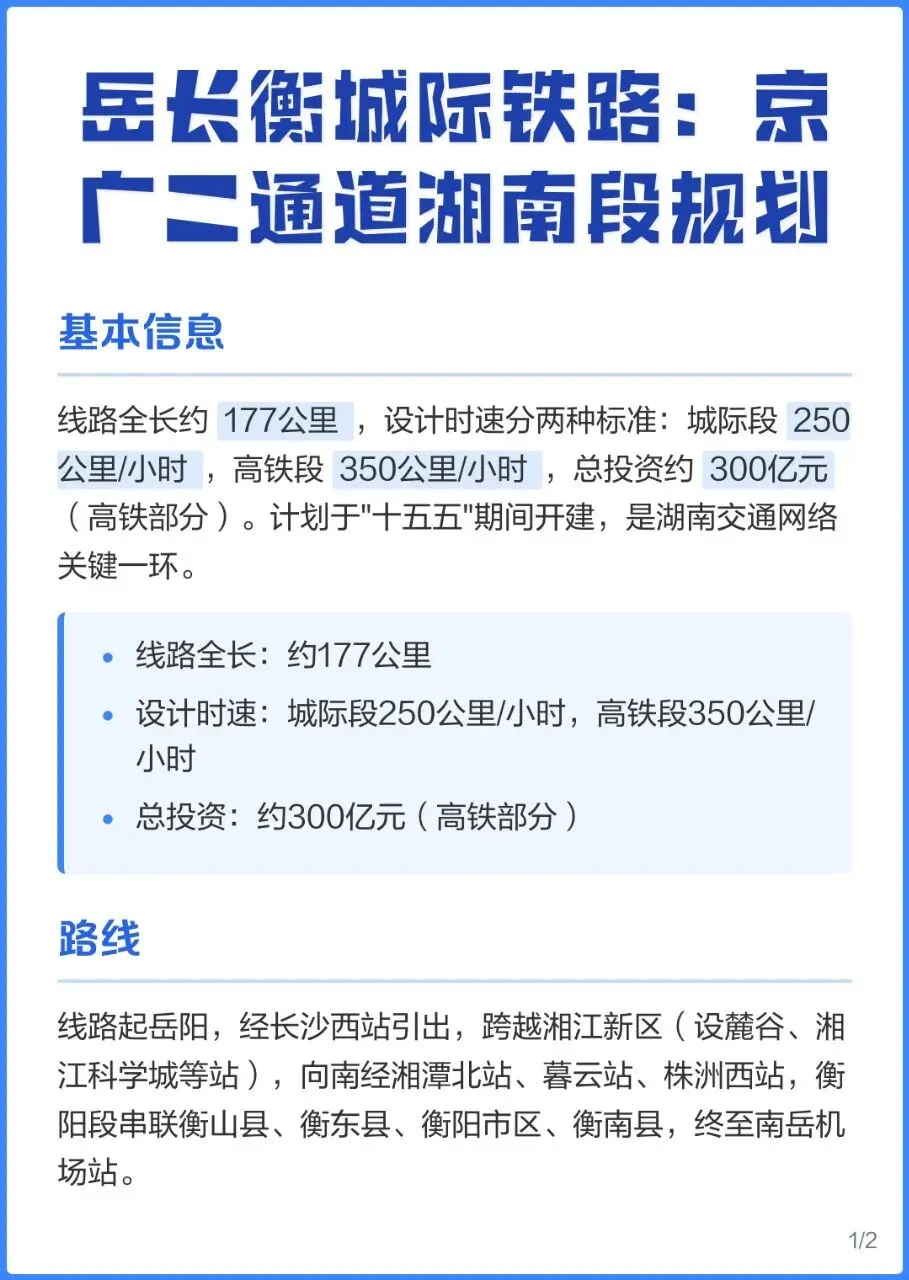 该线路并非重复建设,而是功能互补的“大动脉”与“毛细血管”。前者以公交化运营满足短途高频需求,后者专注长途运输。湖南最发达的“岳阳-长沙-衡阳”走廊,其经济总量、人口规模、城市联系紧密度,完全符合建设多层次轨道交通网的条件,且具有一定紧迫性。