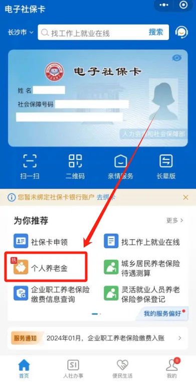 在“电子社保卡”首页“个人养老金”,或者点击“人社办事”,在“社会保障”分类下找到“养老保险待遇测算”。