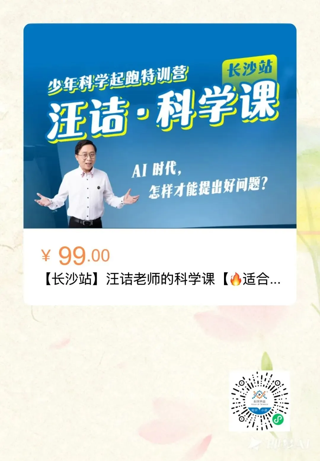 1、本场汪诘的科学课活动权益包含:汪诘老师现身,现场亲密互动,抽送《科学思维手册》;与老师合影、签名;