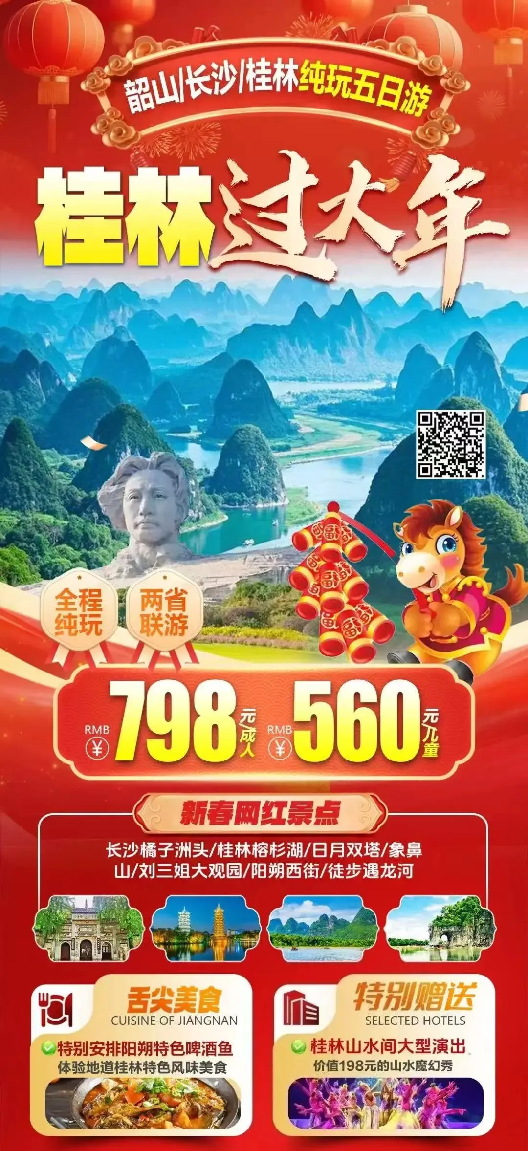 【24号】桂林 韶山 长沙 汽座五日游,感受船上青山顶山行的意境