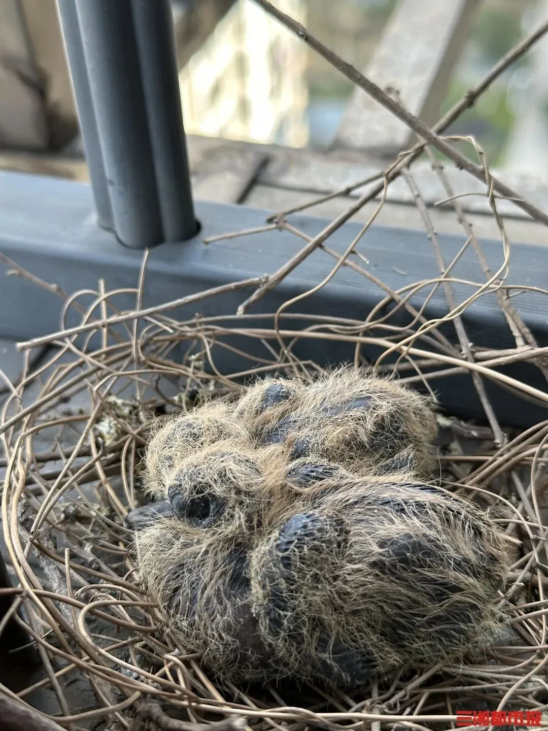 2月22日,付女士家阳台上的珠颈斑鸠幼鸟。虢灿摄