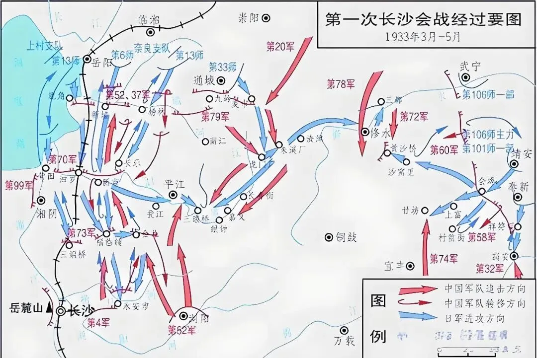 日军越过汨罗江后,经过守军的伏击、阻击,进展不如开始那样顺利,而且战线越拉越长,向长沙前进的道路又悉被破坏,日军所带粮弹也已快用尽,几乎全靠空投,冈村宁次担心继续深入下去将于己不利,且这次作战本就是以奇袭为主旨,尽量在短期内结束战斗,然后恢复大概原来态势,9月29日,他乘飞机往前线视察后便下达了撤退命令。10月1日,日军开始后撤。其时,刚被军委会任命为第九战区司令长官的薛岳正督促驻长沙、湘潭、株洲各部队抢修工事,准备继续与日军苦战。当日,根据苏联专家的建议,为配合长沙会战,中国空军还从成都出动轰炸武汉日军机场,炸毁日机50余架,击落3架。