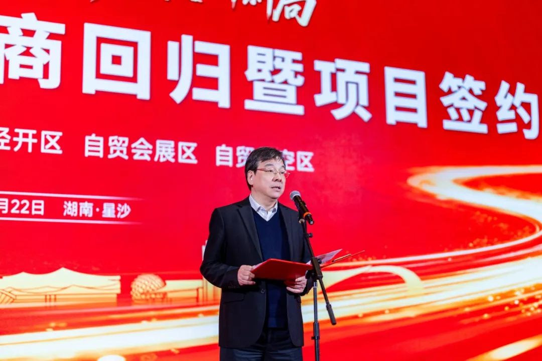 2月22日,“星沙三十正青春 鸿雁聚力开新局”2026年长沙县湘商回归暨项目签约活动举行。湖南省政协副主席、省工商联主席张健,湖南省商务厅党组书记、厅长沈裕谋,长沙市政府党组成员、副市长郑平,长沙经开区党工委书记、长沙县委书记王雄文,长沙经开区党工委副书记、管委会主任蒋红波,长沙市商务局党组书记、局长吴照舒,长沙县委副书记、县长陈永高出席活动。