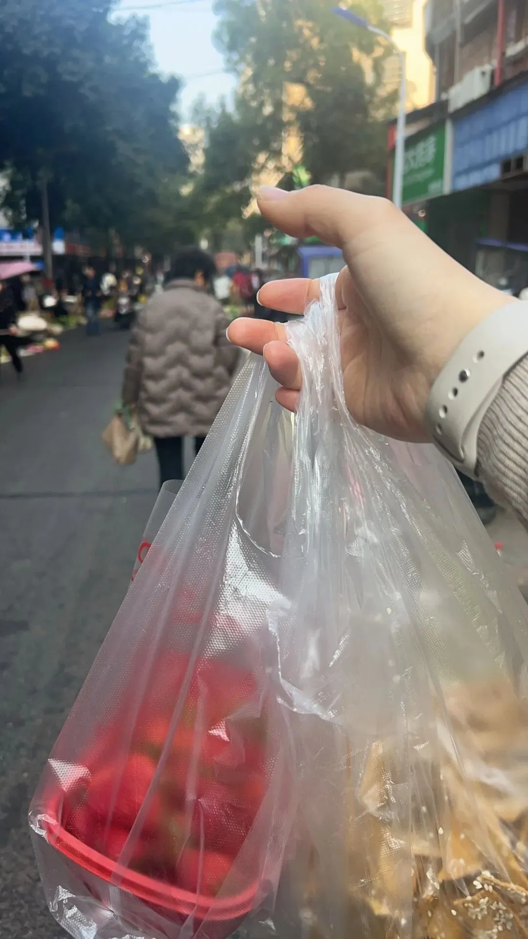 今天一早,老公当司机,送我、妈妈和亲亲去逛衡东的市场,我开玩笑:在长沙都没怎么逛,跑来衡东逛😝非常享受在市场里买下自己看中的东西的感觉,花小钱买到快乐✌️吃了现炸的谭泊麻原和芝麻红薯片,还有红薯坨,草莓🍓我妈买了些她看上的菜,我和亲亲一路当吃货陪她逛😄送过我们,老公去接我爸和云朵,我爸陪着云朵睡懒觉,起来晚了点。