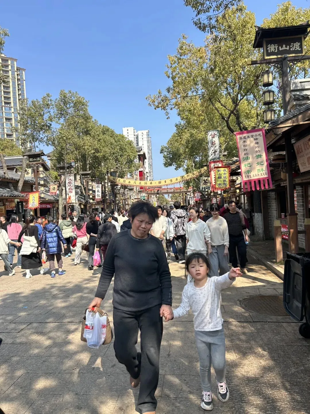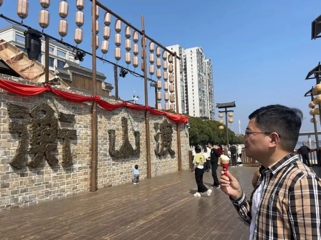吃完早中餐,将近11点,我们驱车前往衡阳县,准备在那里充电,去衡山渡看看。到了衡山县人民广场,周边很多吃饭的土菜馆,很想尝试,无奈早餐吃太晚,不饿。衡山渡是围绕渡口文化新打造的旅游小吃街,人气还是挺旺的,我们逛了一圈,中午天气热,每人吃了个冰激凌🍦然后返程,许广高速有很长一段非常堵,好在6点前到家了✌️