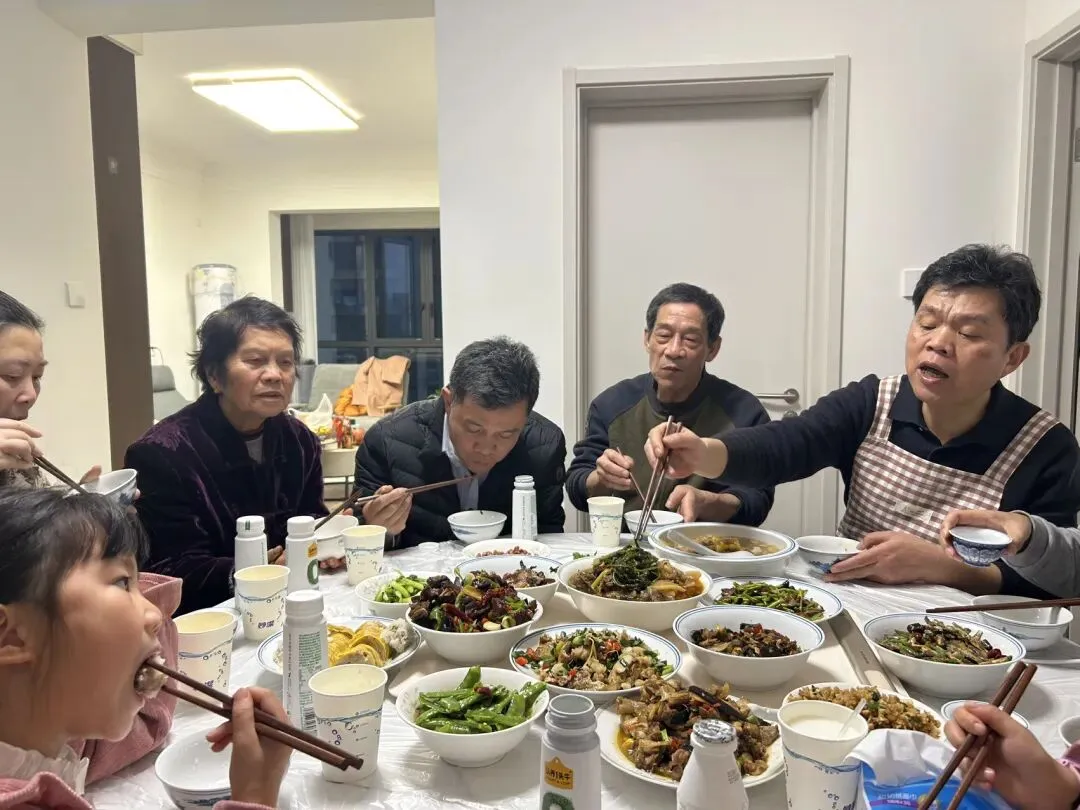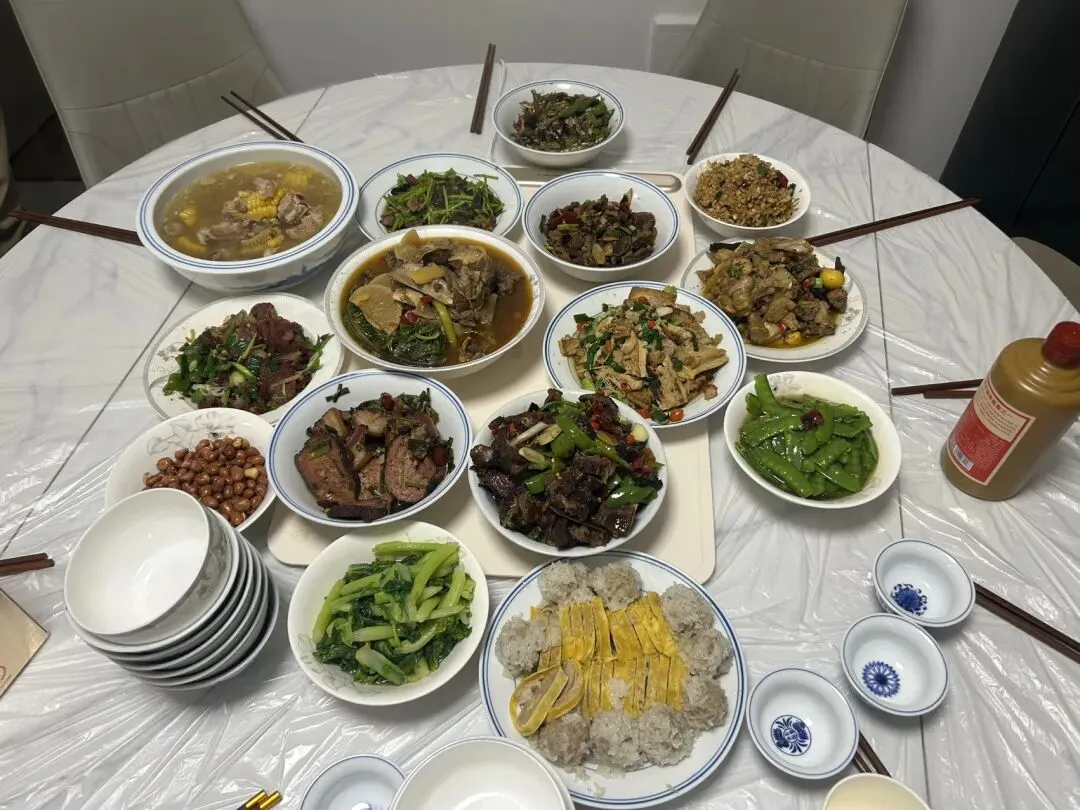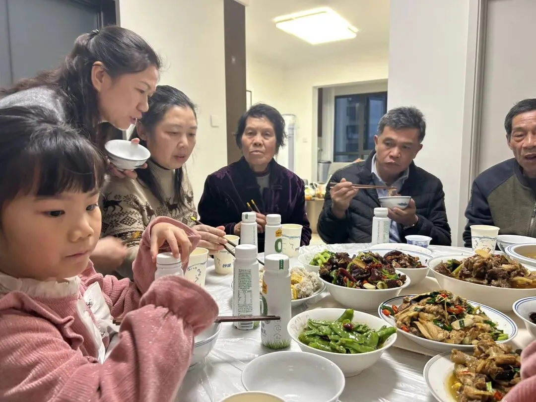 今晚在大舅舅家吃饭,一进门就饭菜飘香,大年初六,一家人继续团聚,庆祝我们的新年🥂