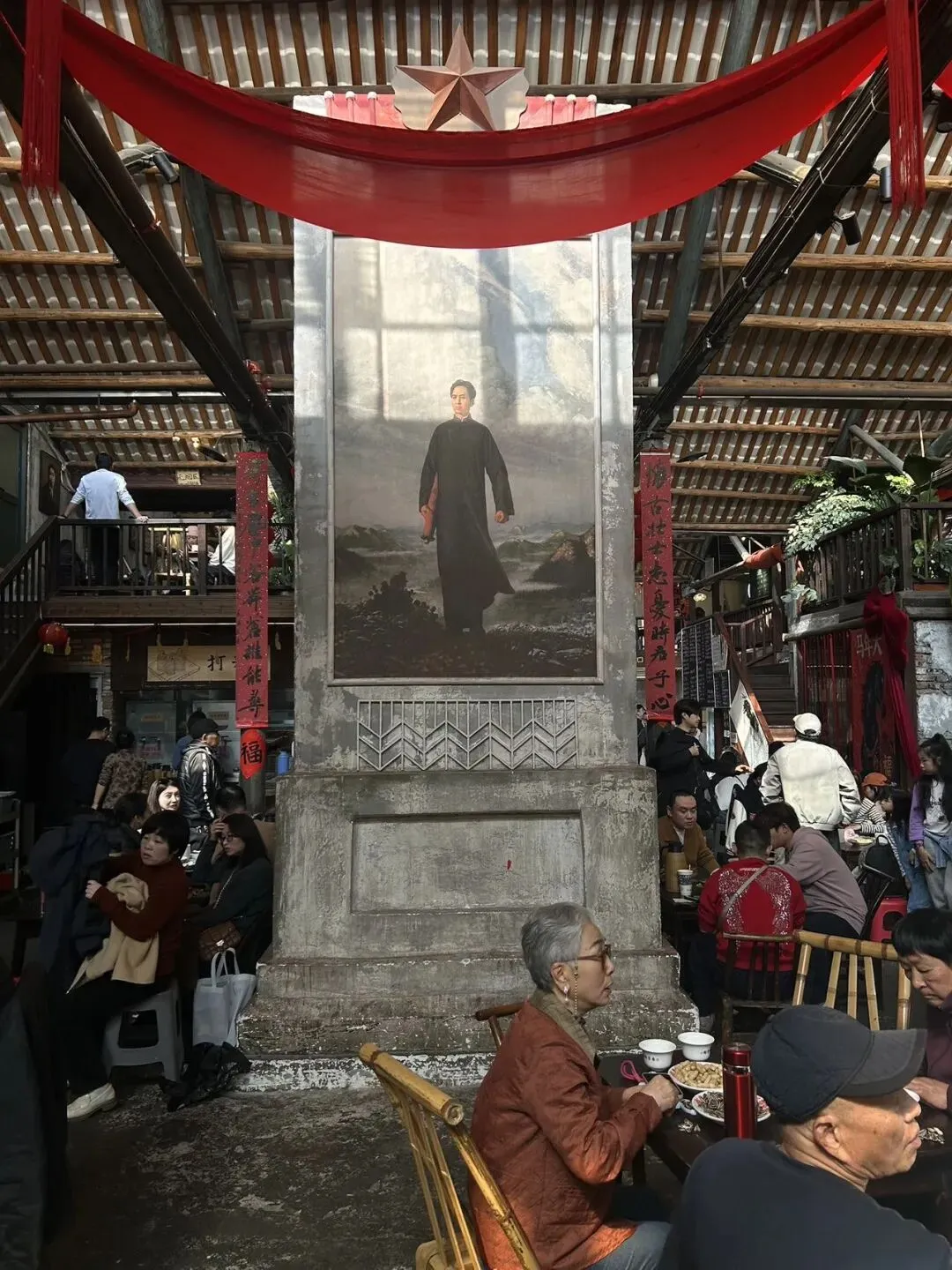 在长沙,我感受到一些市井,瓜子皮、烧烤摊的油都在地上,下午去过的白沙古井比较清澈,旁边告示写着大肠杆菌超标,但人们更信自己喝的口感,而不是官方定制的标杆,算是一种小革命,长沙总有新的商业体让人感到这里还是那个快乐中国 ,客群的range如同人的一生,都能落座一堂,娱乐之都的娱乐,还包括在洗浴 、餐饮 、住宿各方面, 少数群体的青旅、酒吧、场所,取悦着少数派,在这里寻欢作乐,意气风发 如同墙上的领袖。