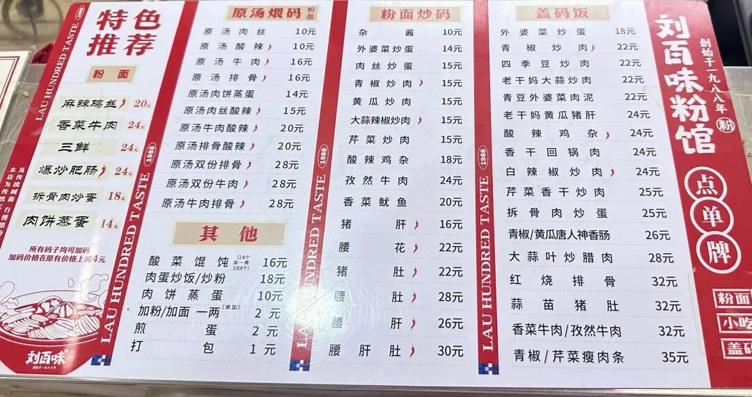 这里叫刘百味粉馆(冬青路店),有粉有面,我最爱他家的带迅干(干拌面),尤其是麻辣鸡丝的。