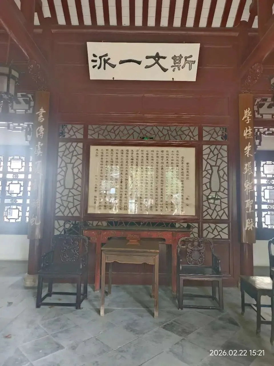 四个字的意思是,岳麓书院是儒家正统文化(道统)的继承者和传播者。即“文脉在此,薪火相传”。