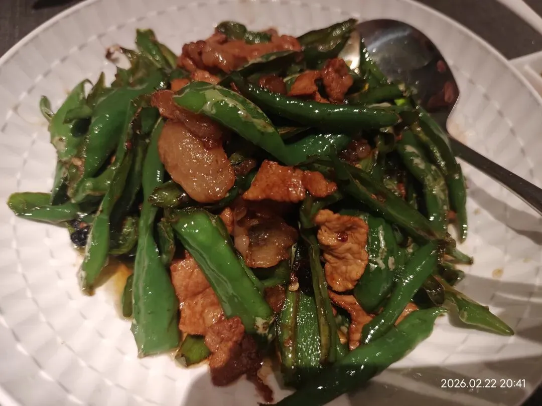 最后吃到的这种“很香、好吃却不辣”的青辣椒很特别,大概率是本地的牛角椒(或湘研系列青椒)。它不是那种完全无味的甜椒,而是有浓郁椒香、口感软嫩、辣度极低的地道食材。