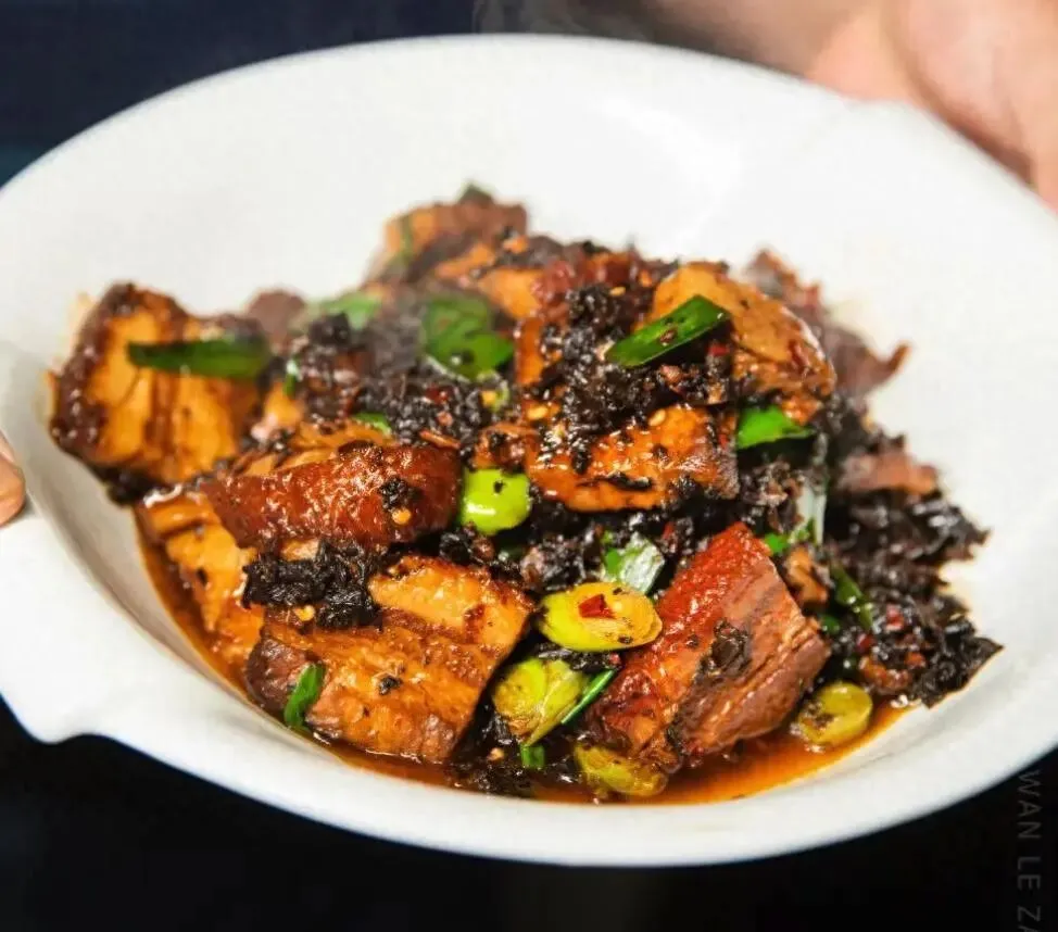 梅菜扣肉分量真的足,肉片亮晶晶的,看着就有食欲。还有瘦肉炒腰花,一点腥味都没有,特别脆。最后一定要点个水芹菜,清爽又解腻。