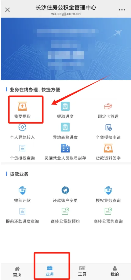 在长沙住房公积金微信公众号,点击业务办理,登录公积金账号