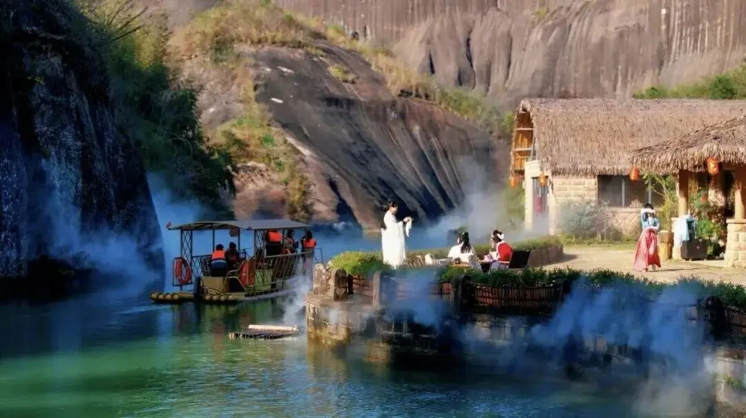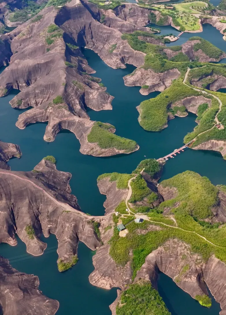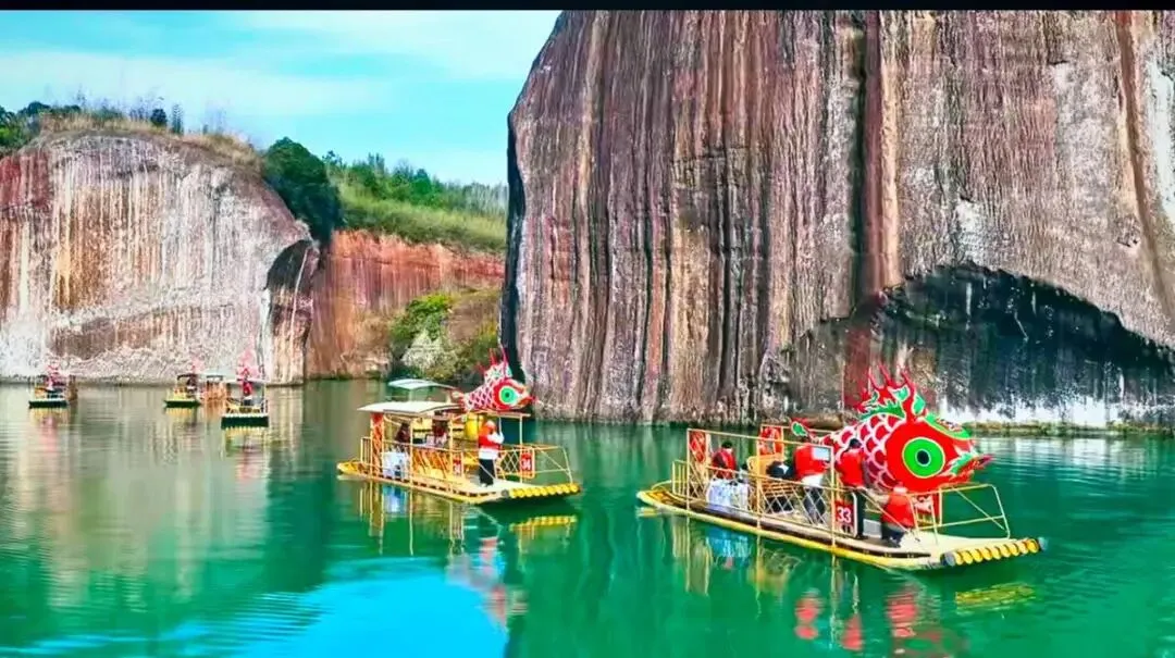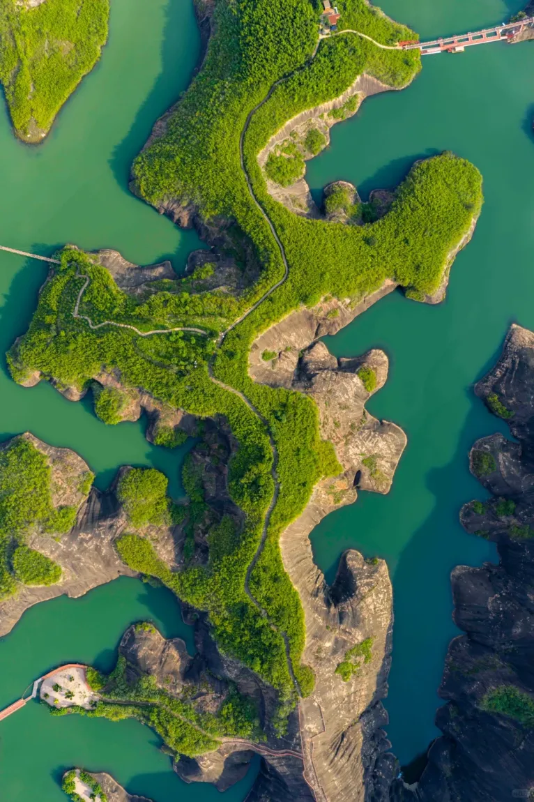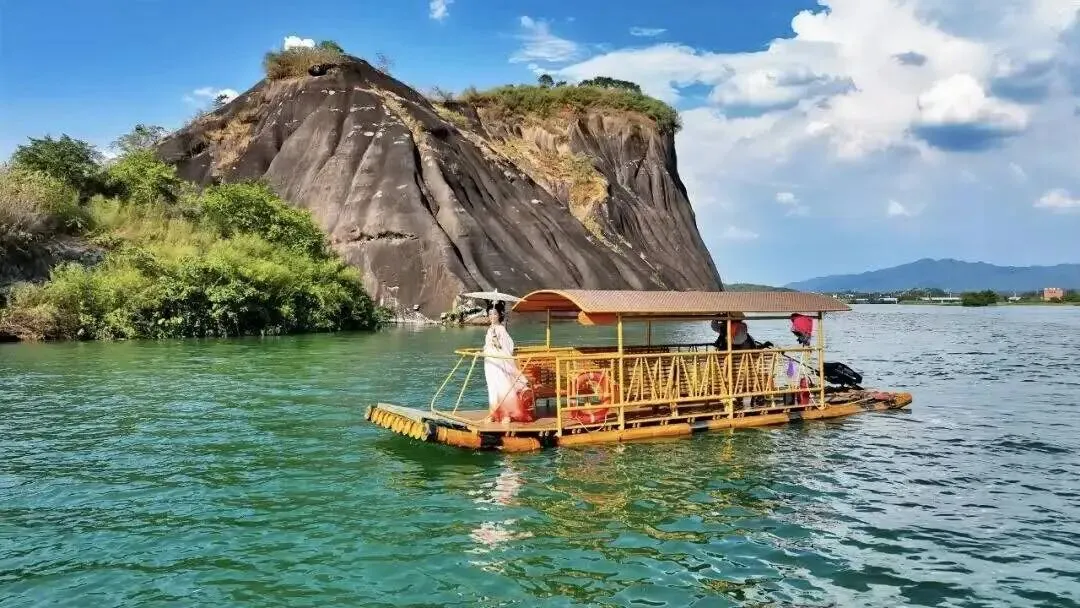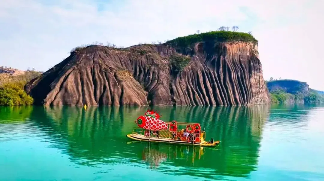 九龙水寨竹筏游船线,是围绕着光滑壮丽的岩石山而行驶,展现一幅精致的水上丹霞地貌画卷!