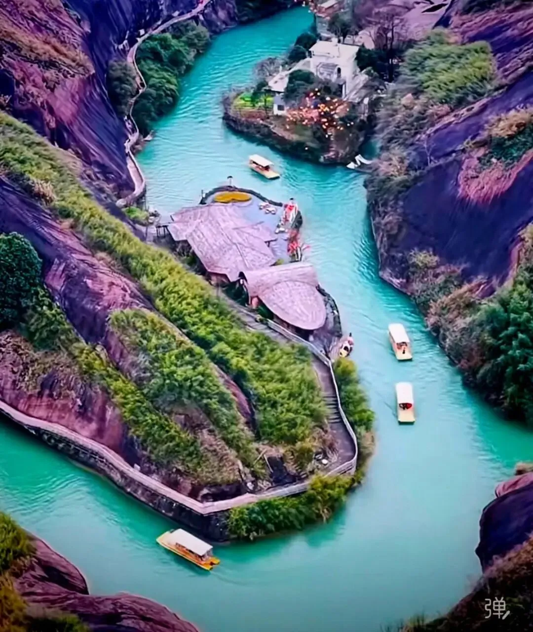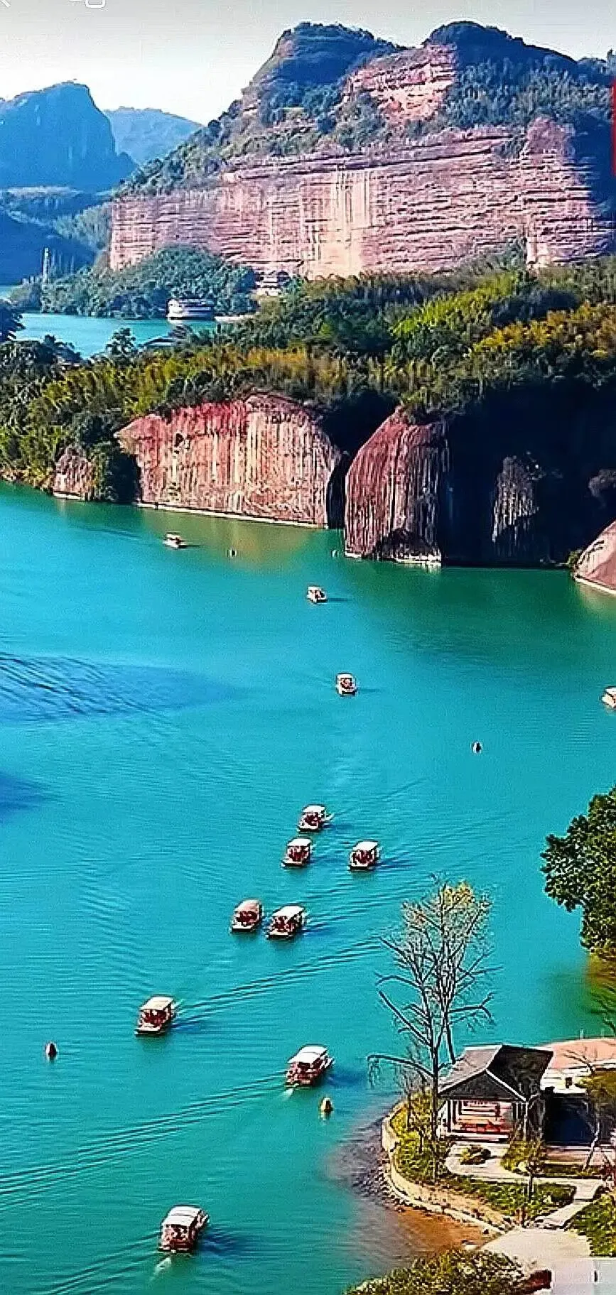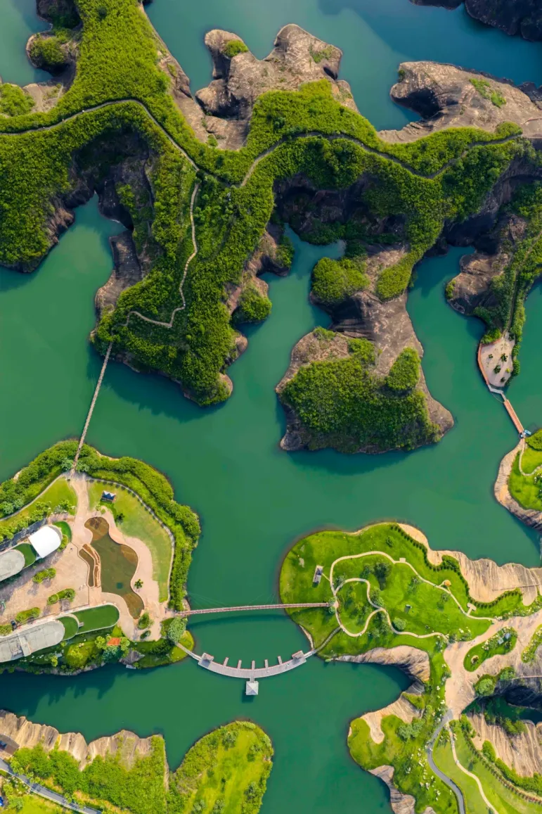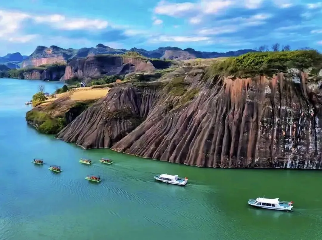 九龙水寨竹筏游船线,是围绕着光滑壮丽的岩石山而行驶,展现一幅精致的水上丹霞地貌画卷!