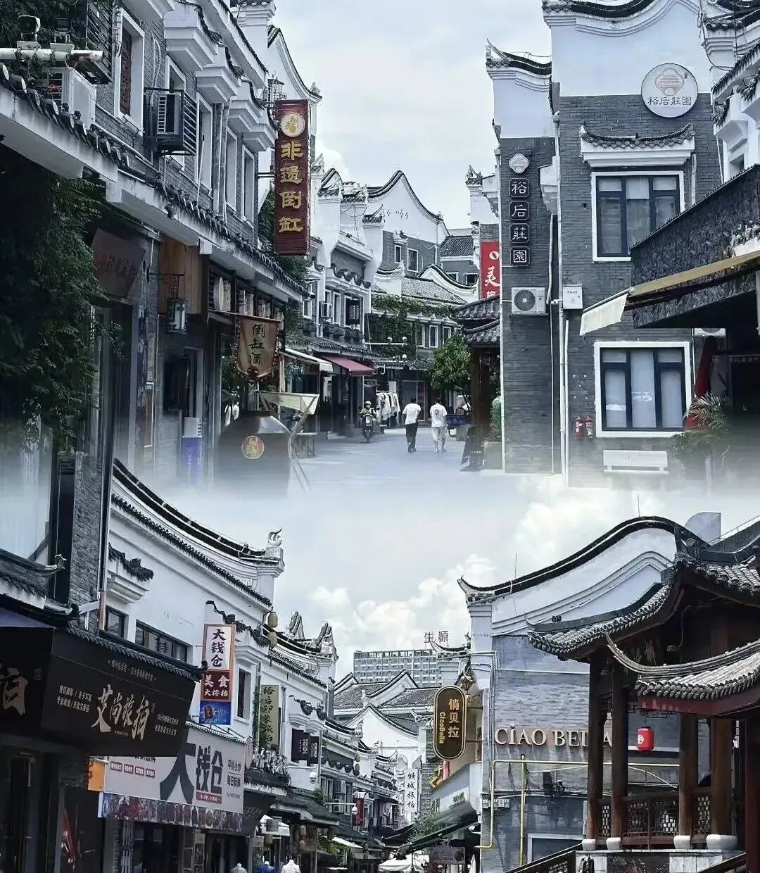 鹊仙桥,因秦观的著名词作《鹊桥仙·纤云弄巧》作于裕后街而得名。千年前的七夕,在郴江河畔的裕后街,秦观营造了一个弱冠少年与一个娇羞的少女携灯同游、共度七夕佳节的浪漫情景。“金风玉露一相逢,便胜却,人间无数。”“两情若是久长时,又岂在朝朝暮暮。”风雨廊桥门牌上黑色金字的“郴江桥”三字,为无产阶级革命家、国务院原副总理陶铸书写。整座桥由桥、塔、亭三部分组成,纯木榫卯结构,工艺考究,造型精美,既能遮风挡雨,也可观光休憩。犀牛井是省级文物保护单位。传说远古神龙带来九头犀牛,将恶龙驱出郴州,其中一头犀牛受伤落在涌泉,化为巨石,从此,这眼井就唤作“犀牛井”,据说此井水可以治愈疾病,故又称“愈泉”。 这口井孕育了郴城一方人,是来往过客和骡马饮水歇息地,也是当年郴州酿豆腐、做酒的优质水源。化龙桥始建于清代,桥下燕泉河与郴江河交汇。桥面略有一定的坡度,光滑的青石板证明了它的历史。化龙桥上方不远处为清淑桥,亦始建于清代。曹氏宗祠始建于清朝道光年间,古色古香,保存完好。曹家清代出了曹信儒和曹信魁两位举人。1927年大革命时期,曹氏宗祠是当时苏维埃政府工农赤卫队革命暴动指挥部,出现了曹亨灿、曹元章、曹元尾、曹元明等9位革命烈士,宗祠大门装裱有烈士事迹。