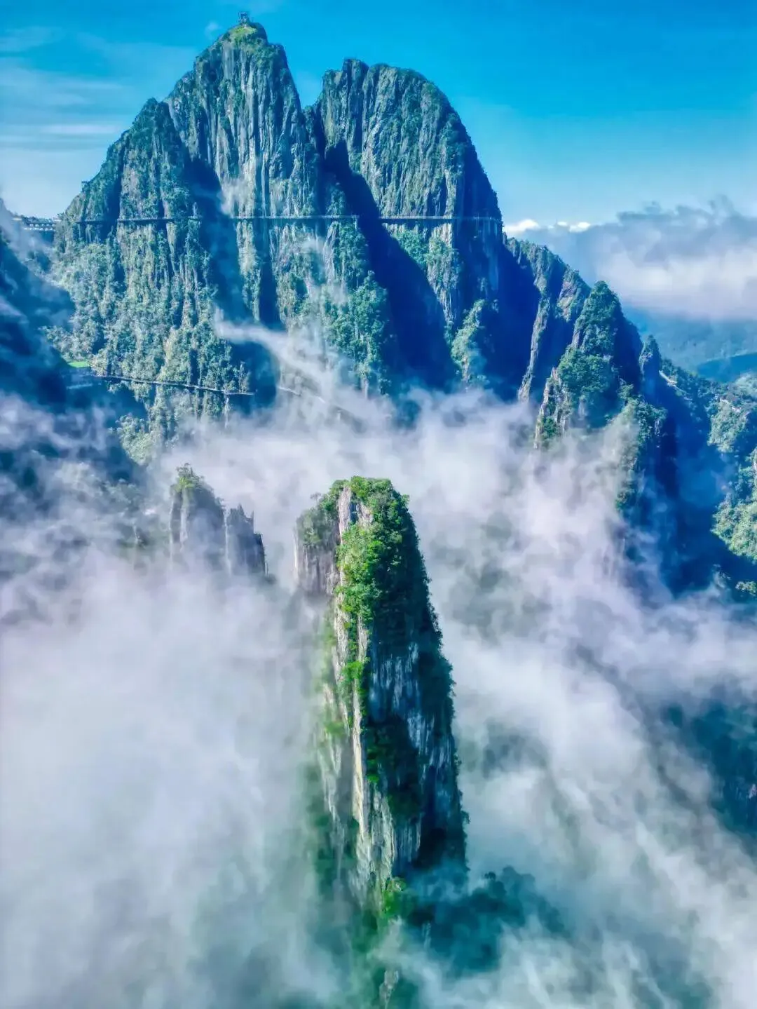第六天:早餐后游览一座不用爬的山【莽山五指峰景区】山水画卷,郴州相见;天下莽山,人间仙境!莽山五指峰景区地处湖南省郴州市宜章县溶家洞,位于南岭山脉北麓、湘粤两省交界处,是地球同纬度保存最完好的原始森林、中国南方动植物基因库、南岭山脉唯一花岗岩地质山体,既是生态名山,又是景致奇山,还是福寿圣山。莽山五指峰通过索道、电梯、自动步梯、垂直提升机、斜挂提升机以及八公里无障碍步道,让爬山变成了游山,成功打造了“一座不用爬的山”。景区引进奥地利进口索道,全长3.7公里,是中国最长的单线缆车。游览结束晚餐后后返回酒店休息。