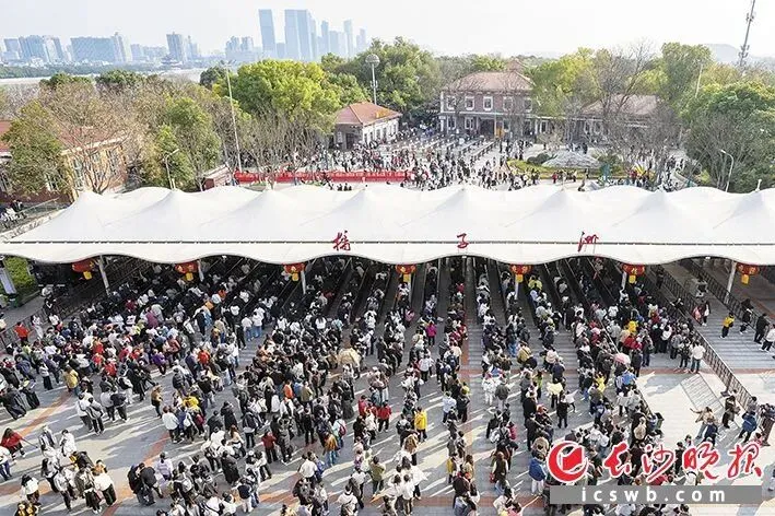 2月21日,橘子洲景区入口大批游客排队入园。 长沙晚报全媒体记者 邓迪 摄