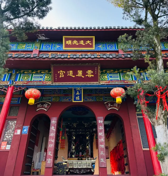 云麓宫在林间,面朝山风,门前石阶很朴素。