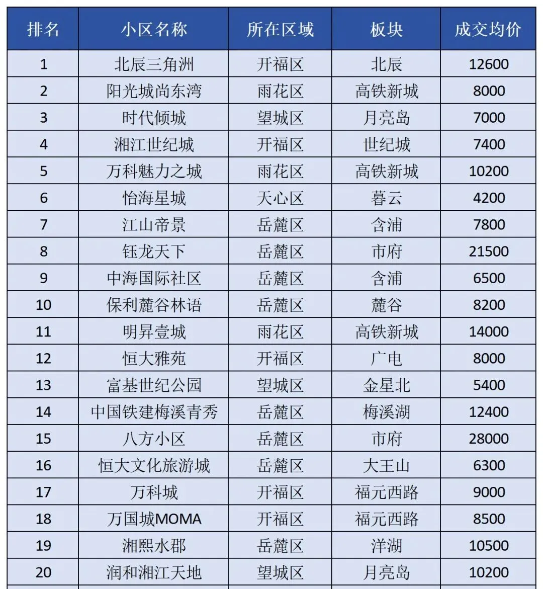 (长沙二手房小区成交排名)