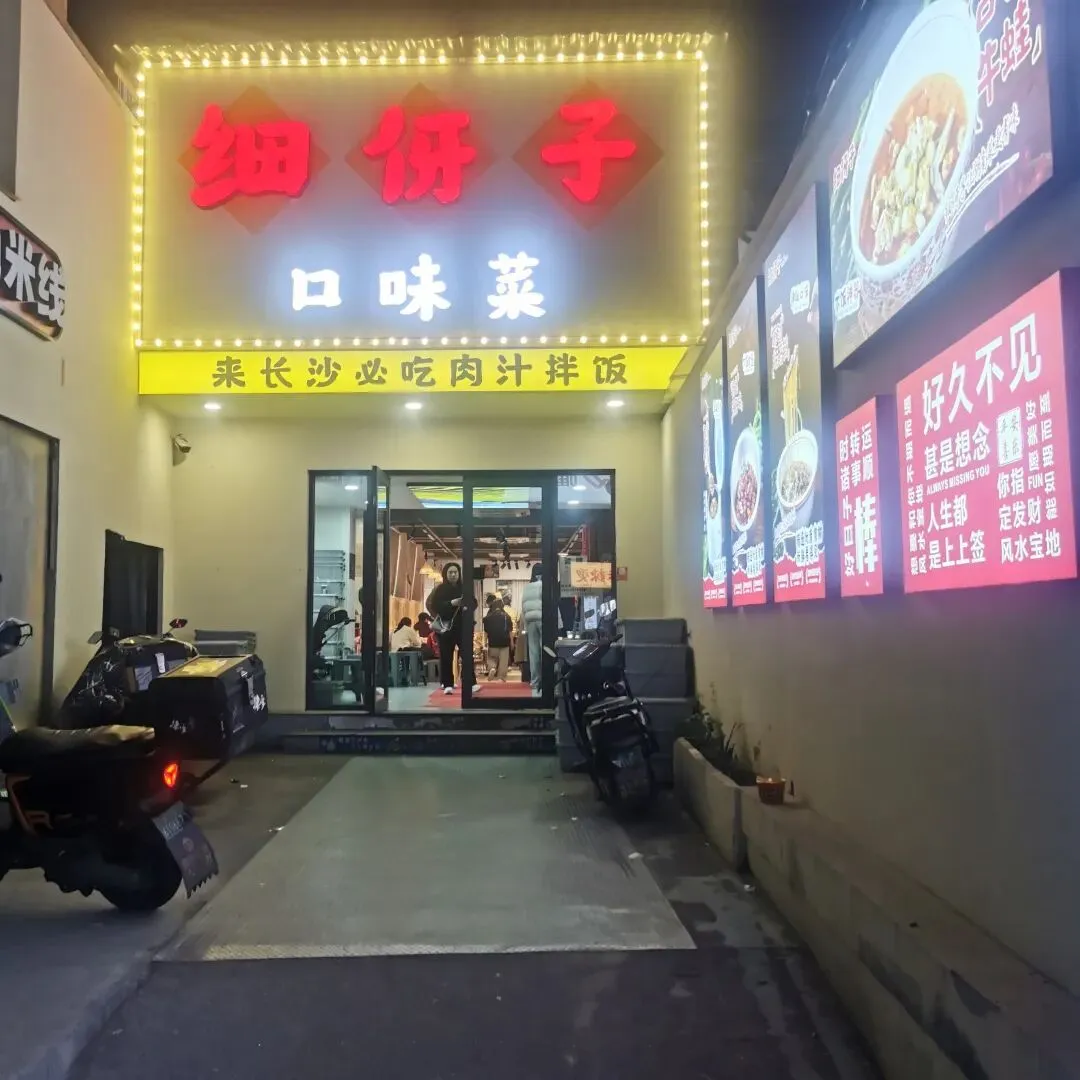 小吃街上人潮涌动,到处都是地道的湘味香气。我们在太平老街看到一块“来长沙必吃肉汁拌饭”的招牌,一下子被吸引了。