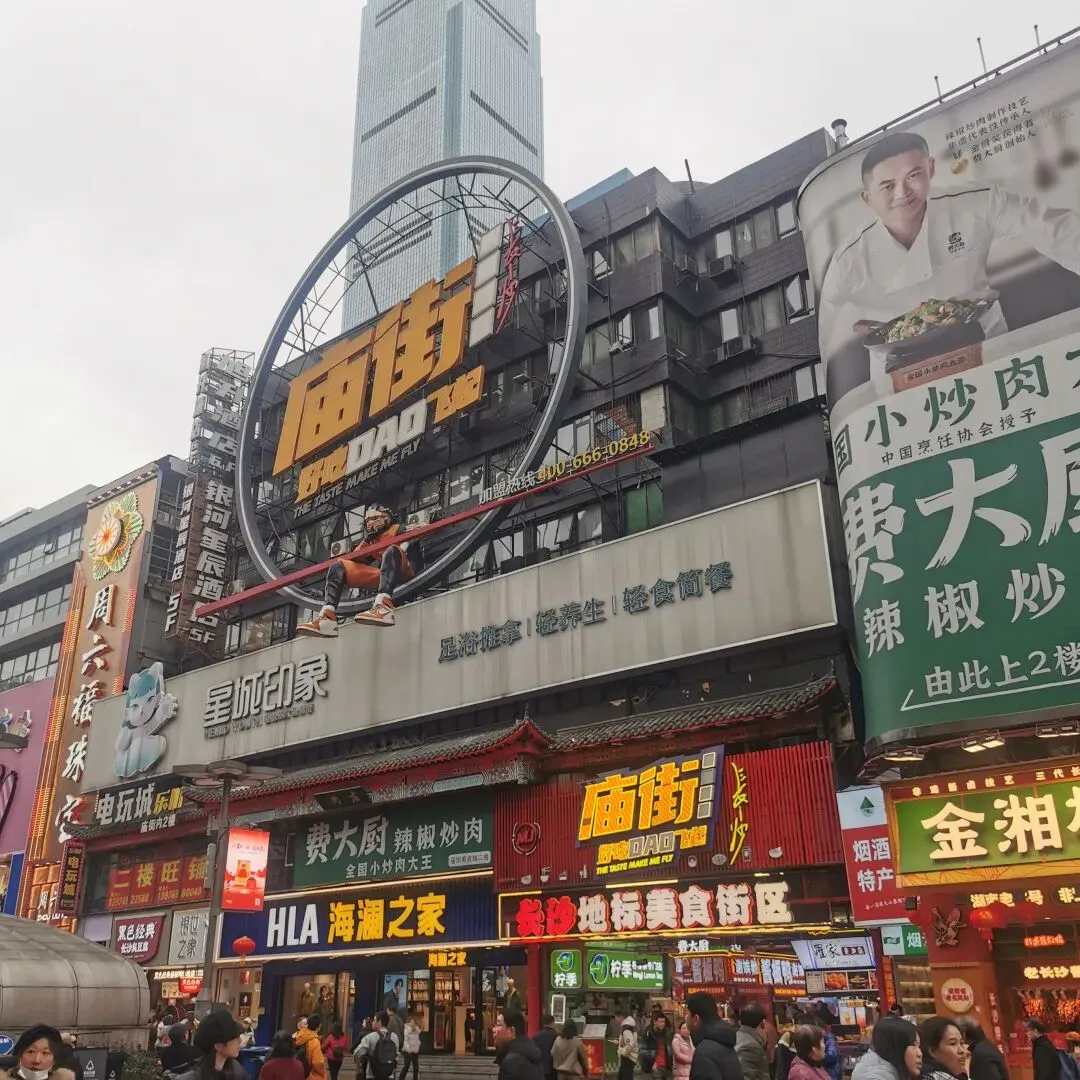 初到长沙,我们直奔人声鼎沸的五一广场,那是长沙城市原点与千年城心,位于五一大道与黄兴路交汇处,为芙蓉、天心、开福三区交界点,也是地铁1、2号线换乘枢纽 。此地自楚城建城起便是中心,历为官署驻地;1952年因五一路通车得名,2000年后形成现代商圈,2020年被确认为城市原点 。狭义指东北角广场公园,广义泛指路口及周边核心区,是五一商圈的核心引擎,为首批国家级夜间文旅消费集聚区 。他和西安的回民街、成都的宽窄巷子、重庆的磁器口、襄阳古城北街等成为城市饮食文化中心和人员聚集中心。长沙五一广场日均客流超30万人次,聚集太平老街、坡子街等商业街,茶颜悦色、文和友等本土品牌扎堆,既是长沙商业地标,也是感受城市烟火与夜经济活力的必到之处 。