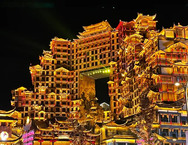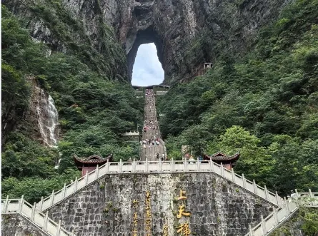 第五天:天门山-72奇楼 餐:含早中晚餐宿:张家界 早餐后前往文学大师金庸欣然挥毫的“天门仙山”——【天门山】(含扶梯+鞋套)登张家界之巅云梦仙顶,俯瞰张家界全景,观赏奇妙美丽的盆景花园,游览盆景石区、登云梦仙顶.山体孤峰高耸,气势临空独尊,俯瞰俄罗斯空军特技飞行表演在天门山上穿越的世界最高的天然穿山溶洞——【天门洞】、俯瞰世界弯道最多、公里数最大、坡度最陡的景区公路——天门通天大道。远眺门洞开、碧野瑶台、觅仙奇境、鬼谷显影,此外天门翻水、野拂藏宝、独角瑞兽等天门六迷及诸多闻名遐迩的民间神闻传说。还有惊险刺激的【悬空玻璃栈道】,挑战你的高空极限,历史文化积淀深厚的天门山,一直被当地人民奉为神山,圣山,更享有“湘西第一神山”和“武陵之魂” 的美誉。参观张家界另一地标建筑【72奇楼】,这幢建筑风格迥异的奇楼,设计思路和创意灵感来自于土家族、苗族最传统的建筑——吊脚楼。通过设计者建筑师独具匠心的营造,采用拆旧还旧、修古复古的原创手法,将十八栋原汁原味的湘西吊脚楼悬挂在门洞两侧。而奇楼门洞与千米之外的天门洞遥相呼应,形成双洞互视、龙头双眼的绝世奇观。