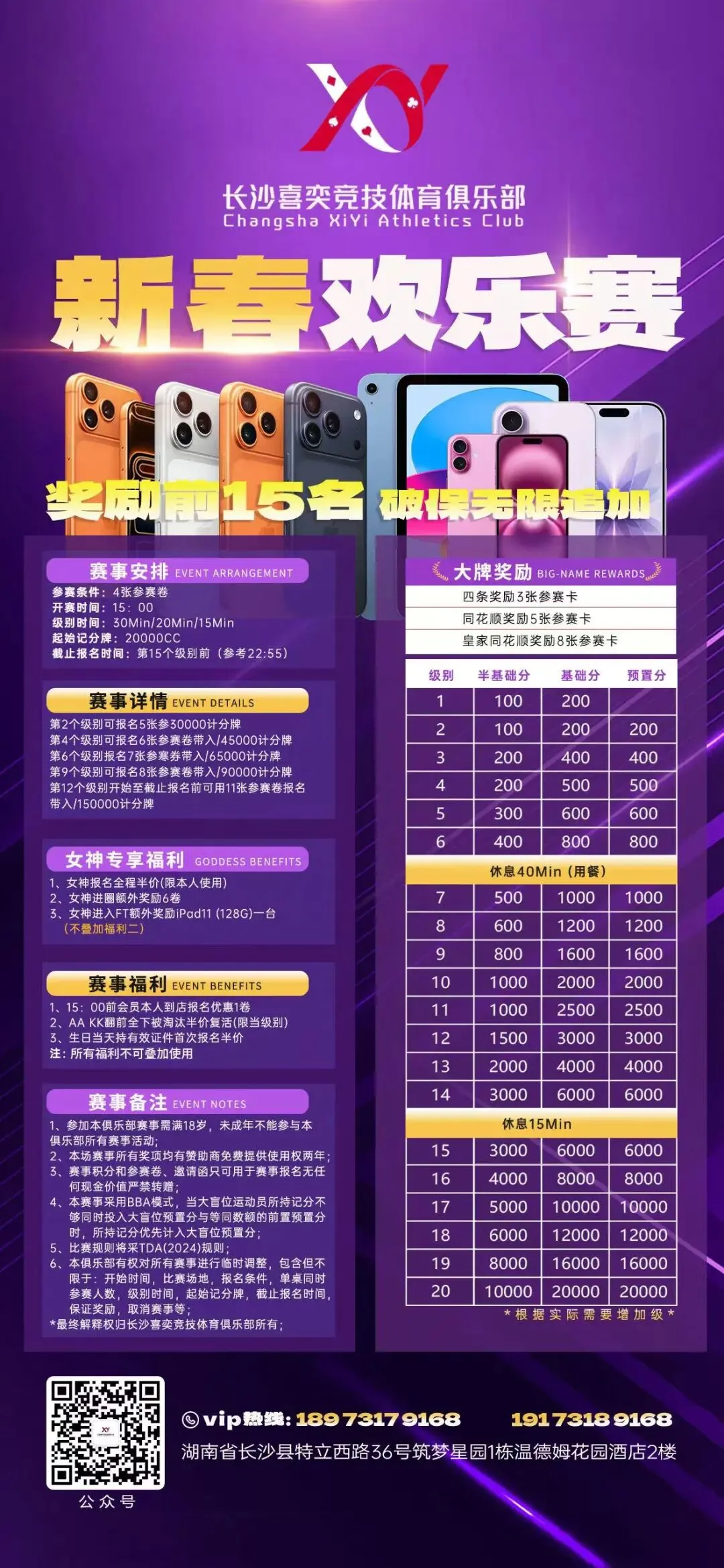 地址:湖南省长沙市长沙县开元中路41号开鑫商城商铺L5003号地址:湖南省长沙县特立西路36号筑梦星园1栋温德姆花园酒店2楼长沙银河智力竞技中心