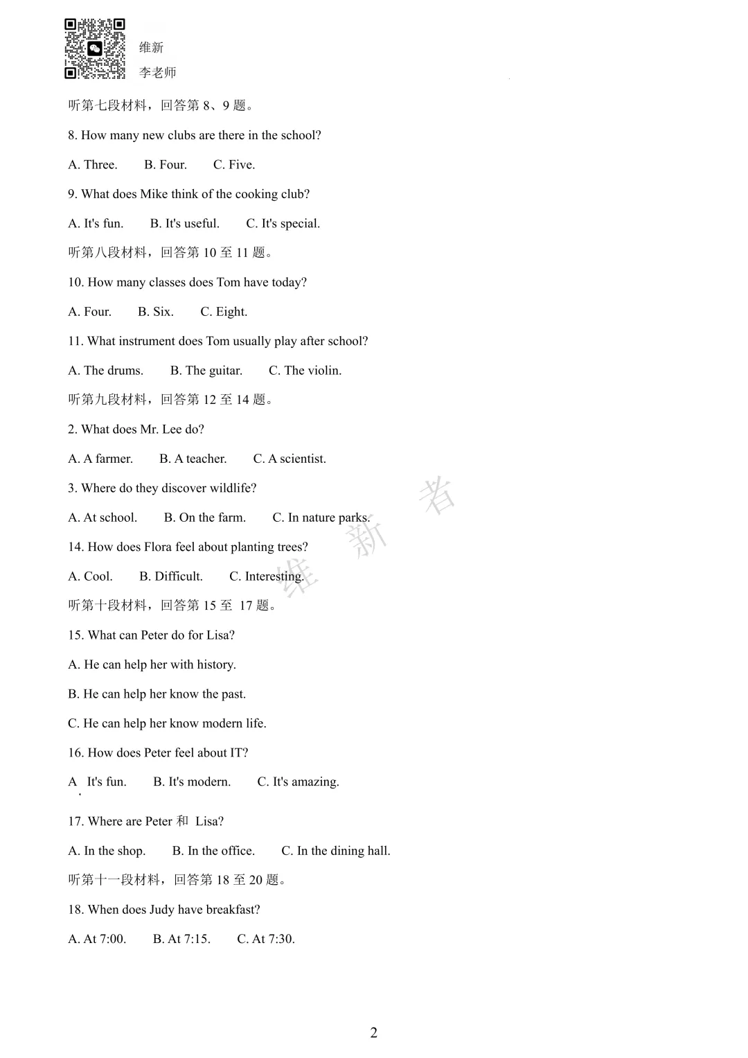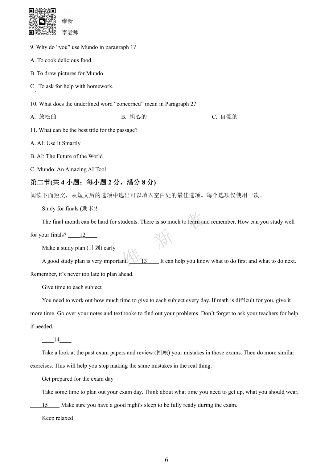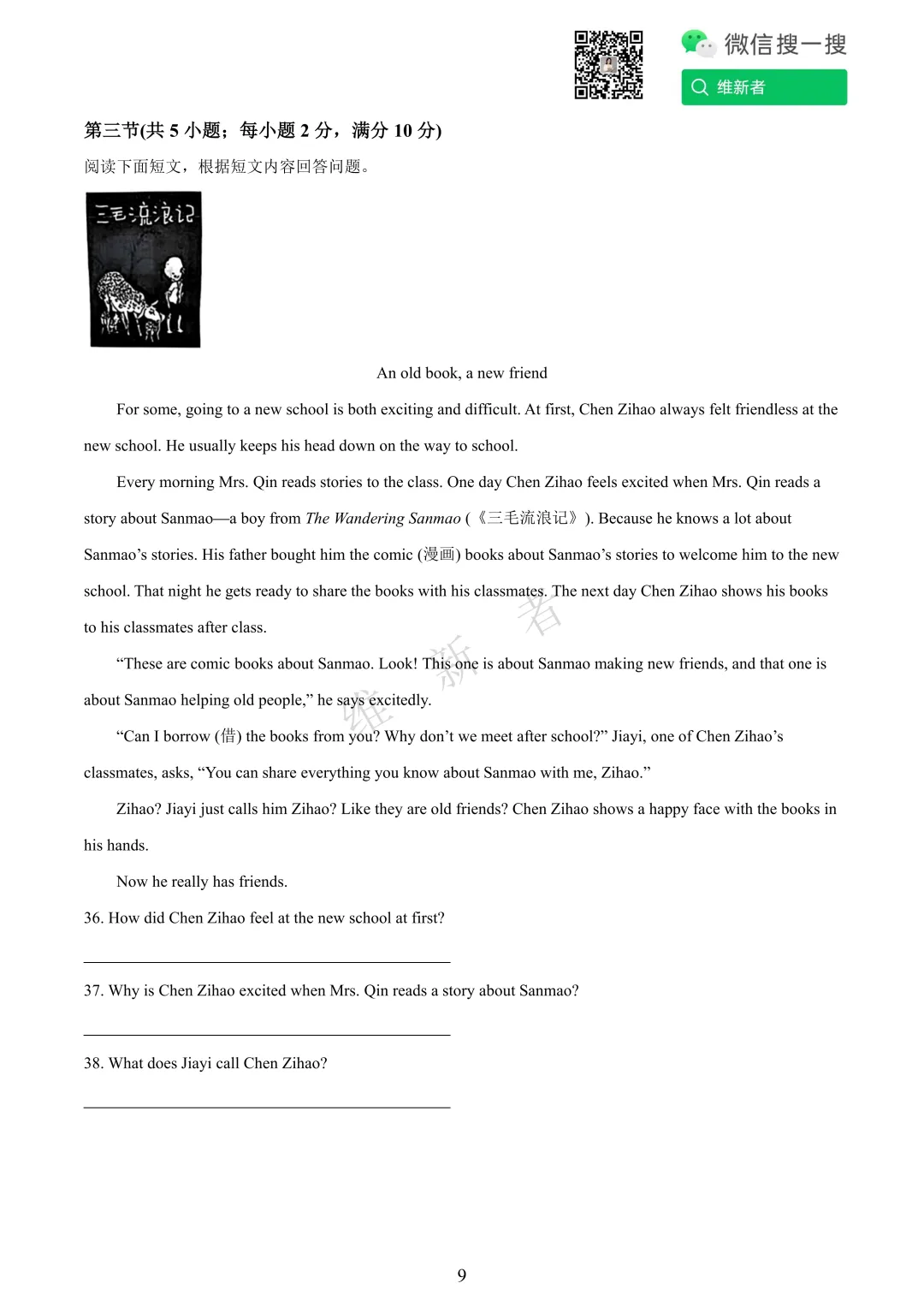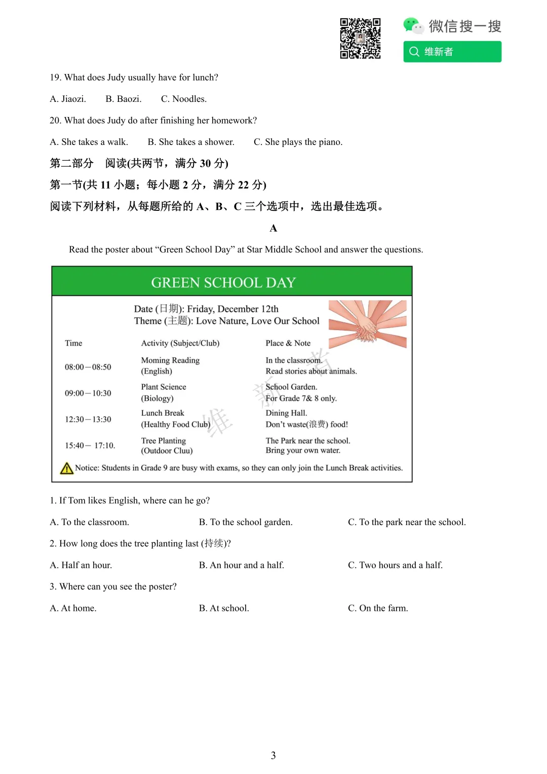 维新者致力于收集和整理各大名校试题,帮助您省心省力获取各类优质的试卷与教辅资源。我们这次带来的是湖南省长沙科大附中2026学年七年级第三次月考英语试题及答案,希望能够有助于您孩子的学习。