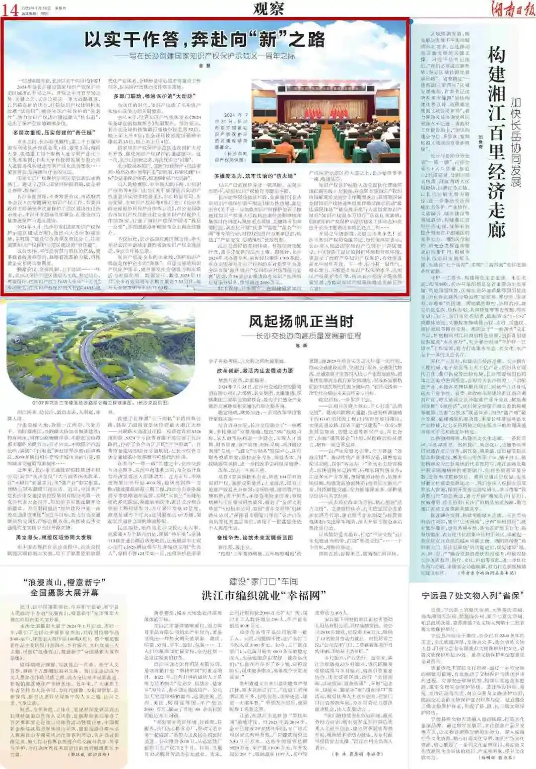 国家知识产权保护示范区是我国扩大对外开放、强化知识产权保护的重要窗口。这一次,长沙以创新之名,再次凭实力“出圈”。