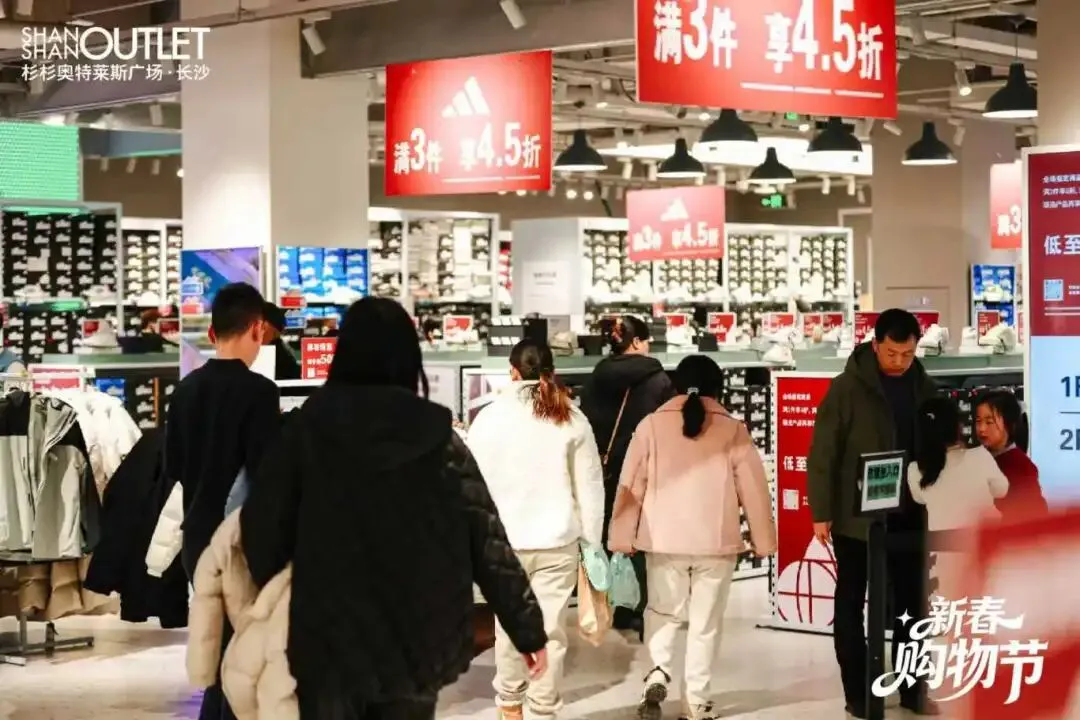 长沙杉杉奥莱大年初一的“醒狮迎春”活动热闹非凡,现场红色灯笼高挂,购物人群络绎不绝,许多家庭趁着春节促销选购换季商品,节日氛围浓厚。各大商场推出的年货大集、满额抽奖、交通票据兑换消费券、免费停车等惠民活动,进一步点燃了市民的消费热情。