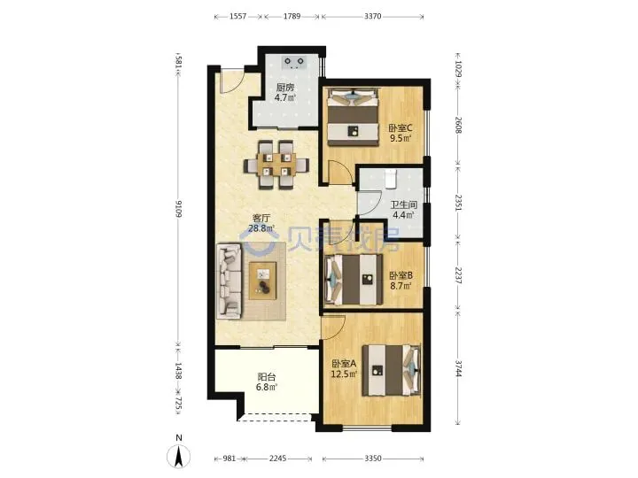 业主急售,面积近91㎡的精装三房,仅售85万,直接拎包入住!
