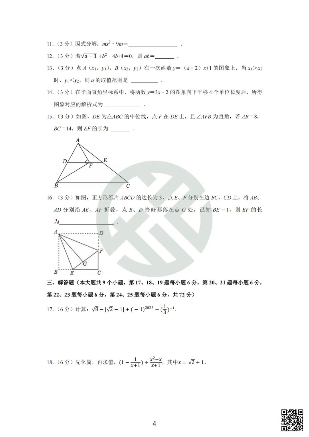 篇幅有限,更多长沙四大名校真题扫码加群领取!!!