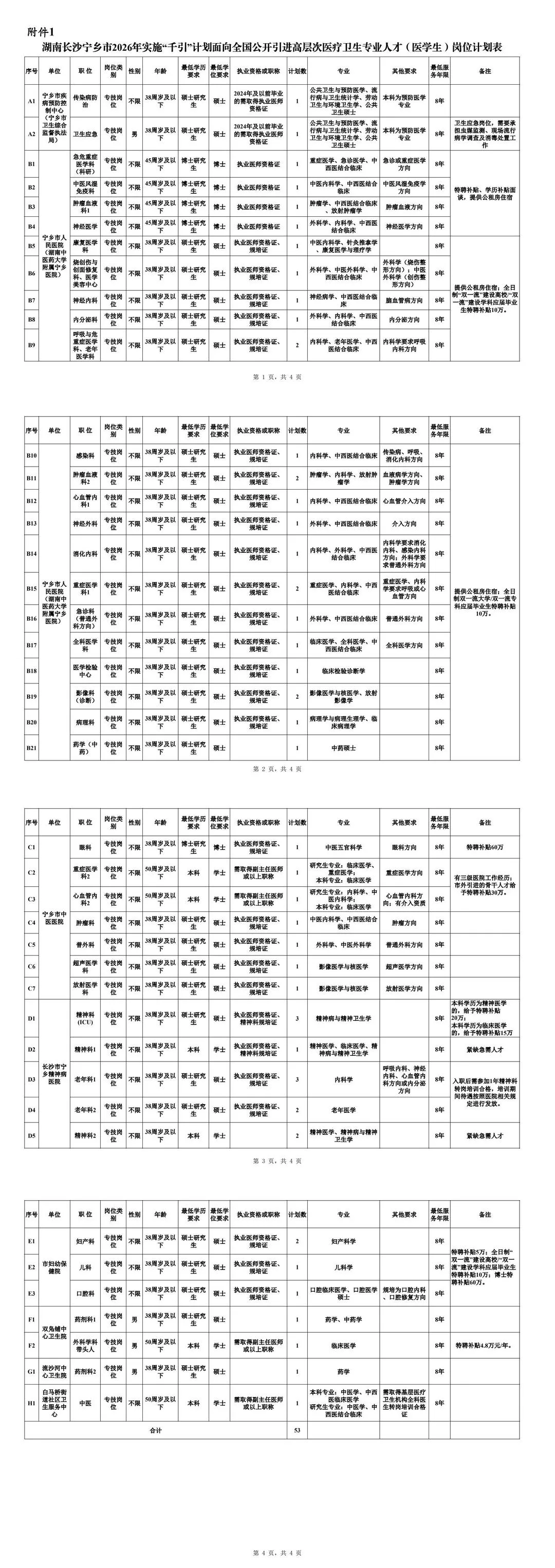 具体引进岗位计划及岗位所需要的条件,详见《湖南长沙宁乡市2026年实施“千引”计划面向全国公开引进高层次医疗卫生专业人才(医学生)岗位计划表》(附件1,以下简称《岗位计划表》)。