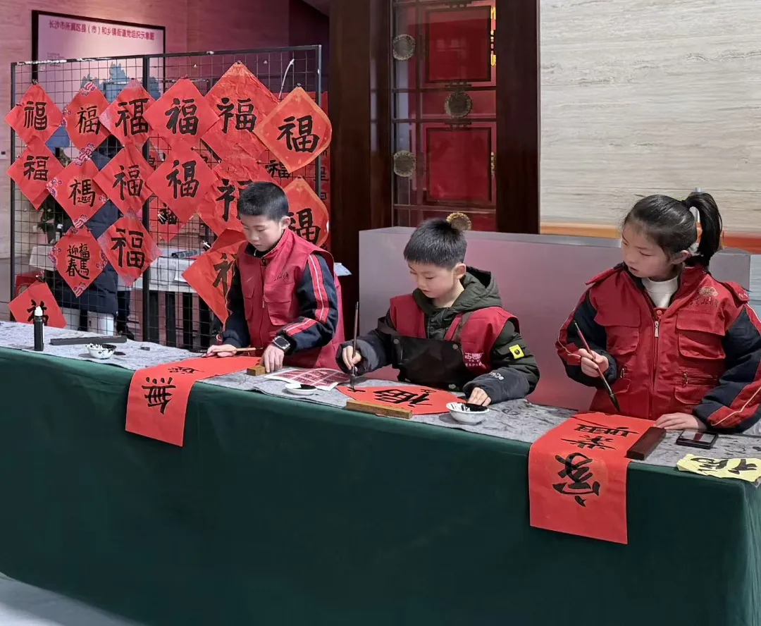 今年春节,长沙党史馆凭借其独特的魅力和丰富多彩的活动,成为了星城新春期间的热门“打卡地”。2月10日活动正式拉开帷幕,尽管天气寒冷,但丝毫没有阻挡游客们的热情。“清小星”们现场挥毫泼墨,将一幅幅寓意吉祥的春联和“福”字送到游客手中,这一温馨的互动瞬间点燃了现场的气氛,引得来往群众纷纷驻足,排队领取这份特殊的新春礼物 。