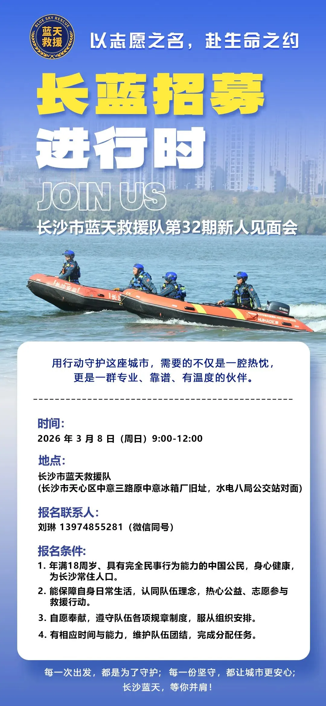 地 点:长沙市蓝天救援队(长沙市天心区中意三路原中意冰箱厂旧址,水电 八局公交站对面)