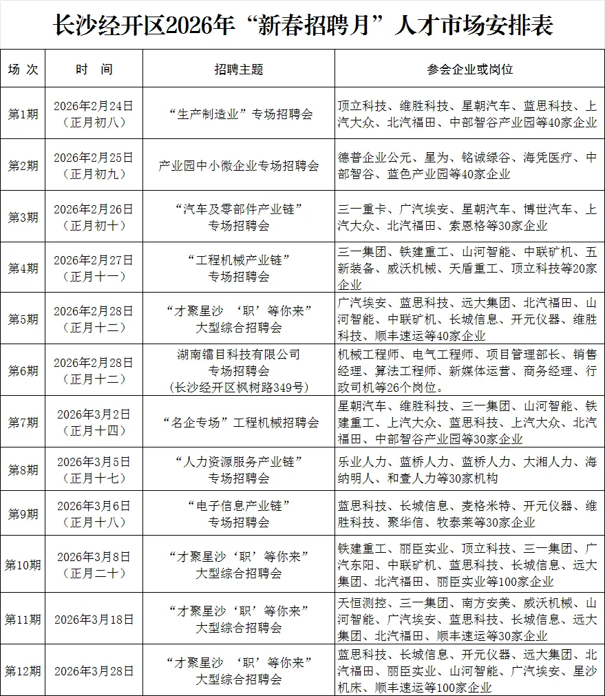 为抢抓春季招聘“黄金季”,吸引更多优秀人才来区发展,长沙经开区归集2.14万人才需求岗位,从需求总量来看,同步增长21.6%;从产业分布来看,电子制造业需求1.42万人,汽车制造3170余人,智能装备需求2320余人,未来新兴产业1690余人;从人才类型来看,研发技术人才需求同比增长42.6%,经营管理人才需求同比增长32.6%,技能人才需求同比增长14.16%,产业工人需求同比增长30%。为应对企业复工复产需求,同步铺排30期“新春招聘月”系列招聘活动,通过省市县(区)官方媒体、人才人力机构平台、劳务协作县(区)就业平台、省内外高校等渠道,广泛开展宣传预热,将人才需求送到广大求职者手中。