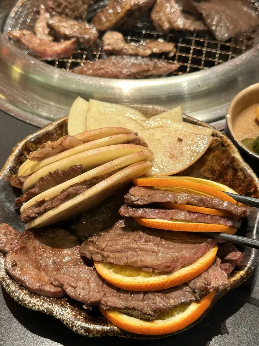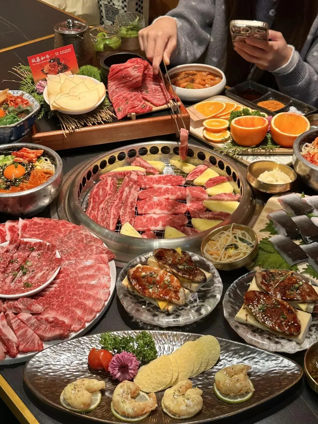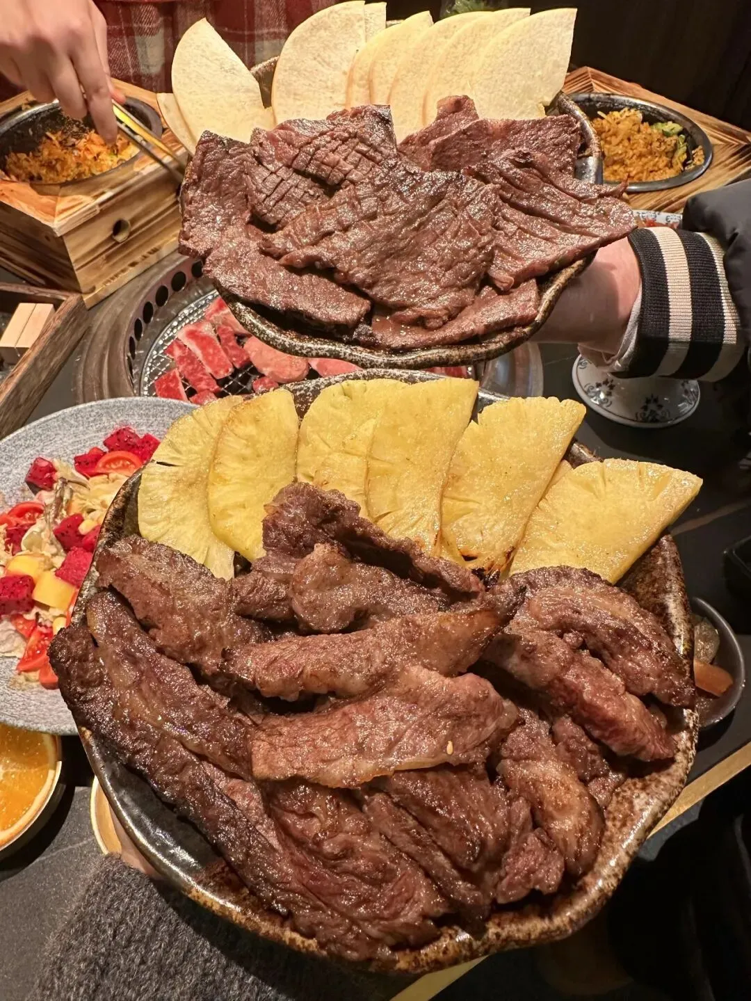 他家烤肉真的是TOP1的存在!他们家主打性价比的和牛:牛五花、牛肋条、牛上脑等等……点大拼盘就可以吃得巨满足!