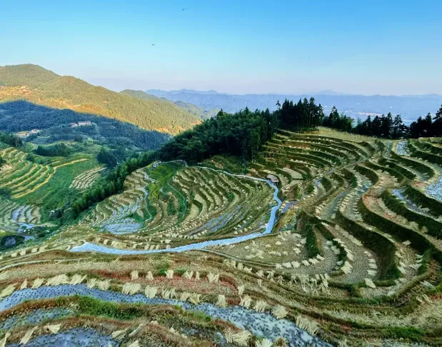 拍照建议赶早。清晨五六点,雾气在山腰缠绕,那是天然的水墨画,不用修图。光线最好是侧逆光,能拍出梯田的水光粼粼。