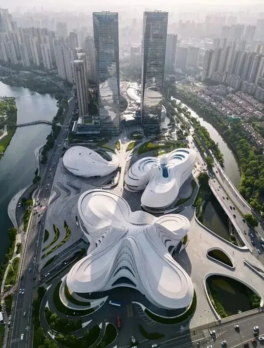 我第一次走近它时,被那种未来感震慑到了。它不像我们常见的任何一栋建筑。巨大的流线型金属屋面,像几片随意飘落的花瓣,又像湘江水的波浪,在阳光下反射着耀眼的光芒。曲线极其复杂、自由,没有一根直线。你会忍不住想,这究竟是怎么设计、怎么建出来的?