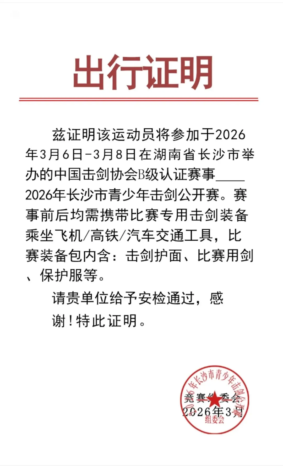 *、2026年长沙市青少年击剑公开赛竞赛规程
