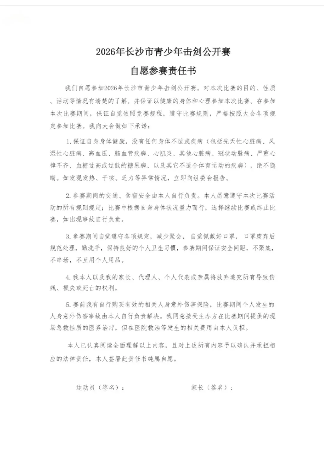 *、自愿参赛责任书&出行证明