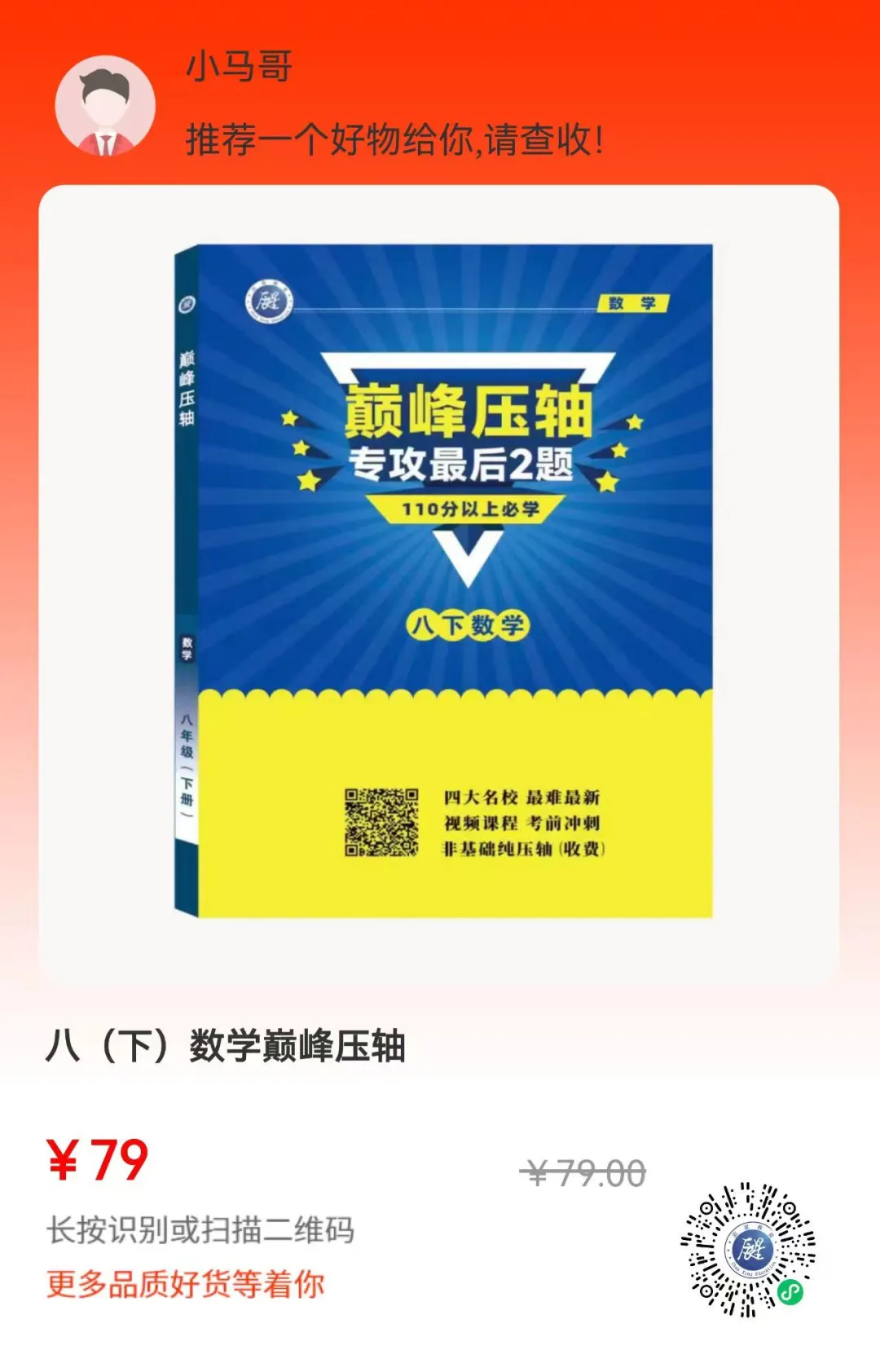 初二是数学分层关键期,全等、相似、一次函数、四边形综合都是压轴常客。本书收录名校初二高频压轴,专攻动态几何、分类讨论、代几结合,总结通用解题模板,让孩子看到压轴题不慌、有思路、能下笔。
