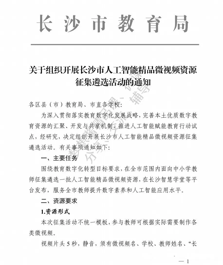 长沙市关于组织开展人工智能精品微视频资源征集遴选活动的通知