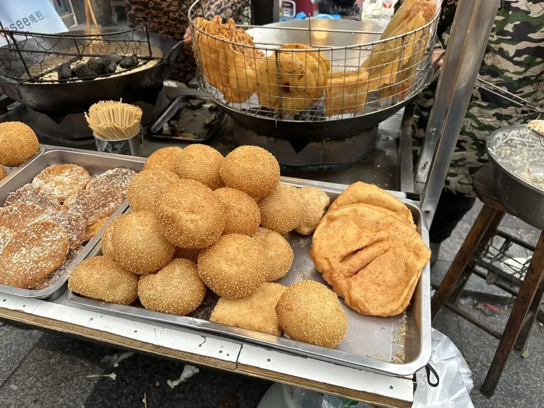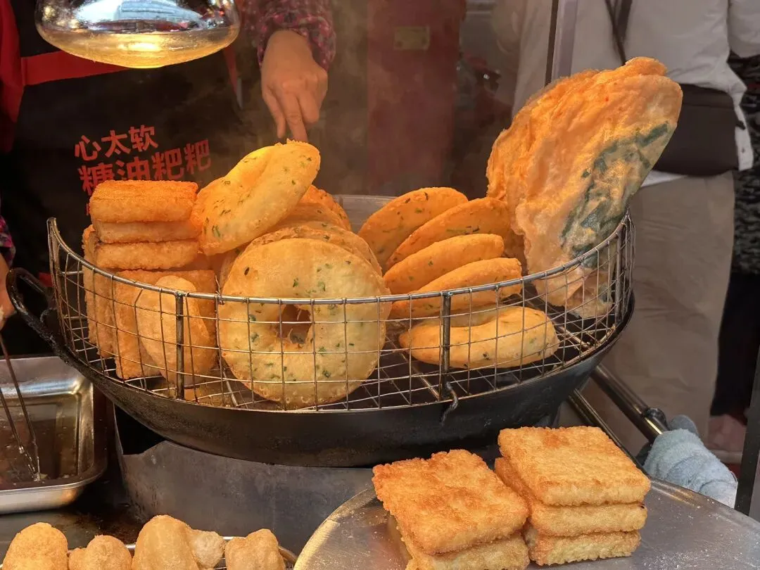 饭后,我们走路来了南门口,这几年南门口的菜市场非常火,我也来打卡了几款特色小吃。01. 葱油粑粑、炸春卷