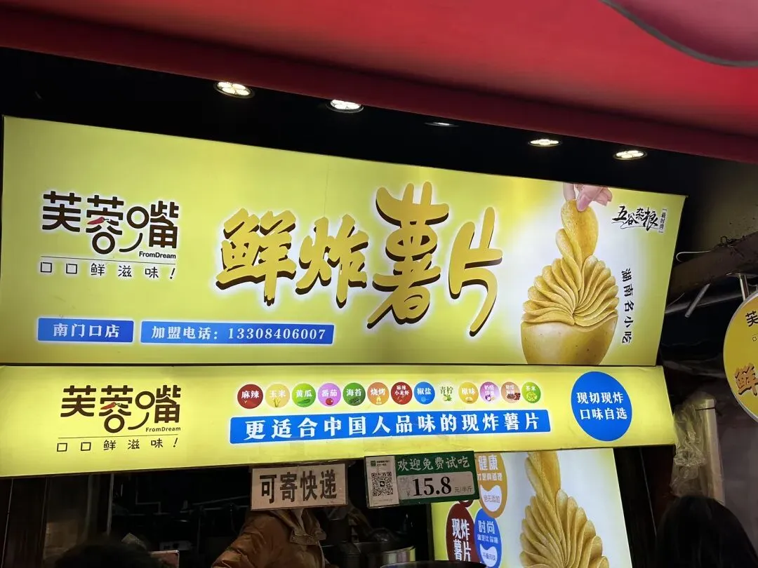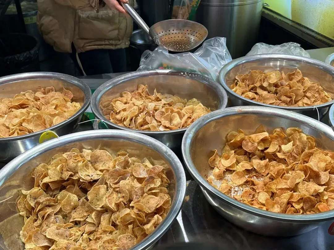 这是新鲜土豆现切现炸的,有海苔、香辣、小龙虾等好几种口味,我替大家都试了一下,味道都不错哈哈哈哈。