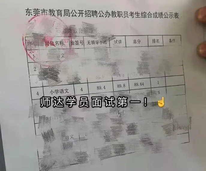 东莞教招最新喜报!面试总分最高分95.8分,无领导、试讲双第一!