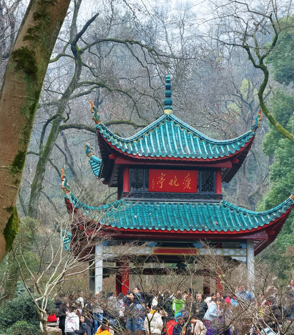 “停车坐爱枫林晚,霜叶红于二月花。”站在亭前,这句从小背诵的诗终于有了具体的画面。虽然时值春日,未见霜叶,但亭台掩映在绿树之中,依然有说不出的诗意。我在心里默念了好几遍,终于把这首诗和长沙这座城市牢牢绑定在了一起——以后提起《山行》,就会想起长沙,想起这个爱晚亭。
