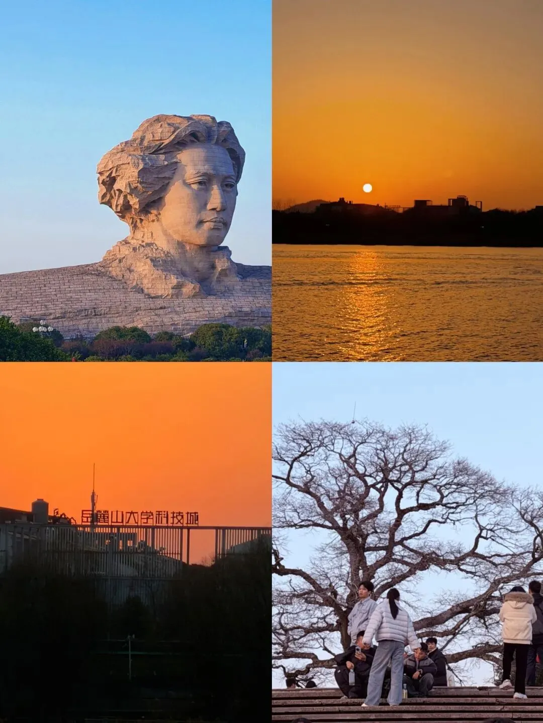 那天阳光特别好,当我们参观完雕像,往回走时,正赶上夕阳西下。湘江水面被染成金色,天空从橙红渐变到粉紫,美得不真实。那一刻,所有的疲惫、所有的小遗憾,都值了。