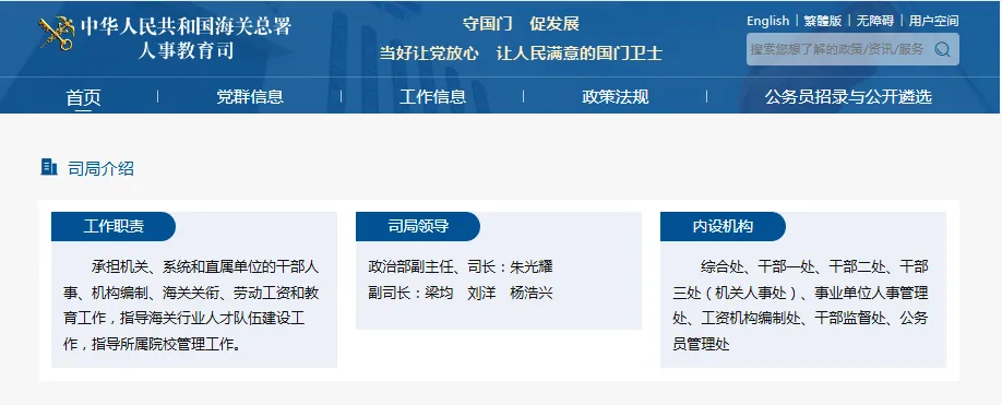 日前更新的海关总署人事教育司官网“司局领导”栏显示,海关总署人教司司长朱光耀已任海关总署政治部副主任、人事教育司司长。