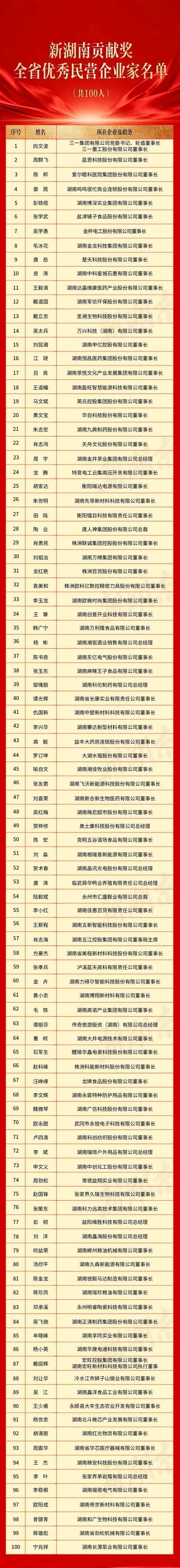 近日,省委、省人民政府发布表彰决定,授予向文波等100名同志新湖南贡献奖全省优秀民营企业家称号。长沙市青年企业家商会会长王薪程、常务副会长江琎光荣上榜,彰显青年湘商担当。